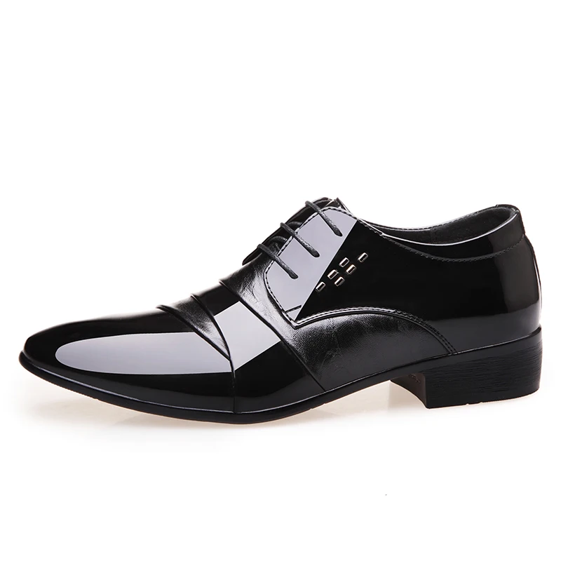 BEST SELLER Quality Shiny PU leather Men oxfords Dress Shoes Fashion Lace-up Wedding Black Shoes Mens Pointed T